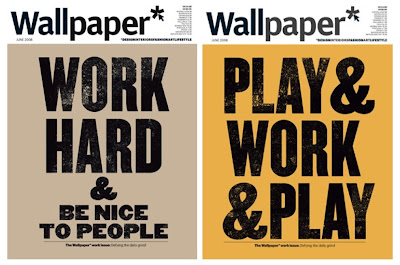 Essa prática de ter mais de uma versão de capa é fantástica. O designer gráfico Anthony Burrill criou um poster/conceito, todo em all-type com a seguinte frase: " Work Hard And Be Nice To People" para a revista de design Wallpaper. O resultado ficou tão bacana que foram desenvolvidas 4 variações do mesmo tema, para a próxima edição. Não sabemos se vai vingar, mas a Wallpaper tem tradição em fazer múltiplas capas para uma mesma edição.
